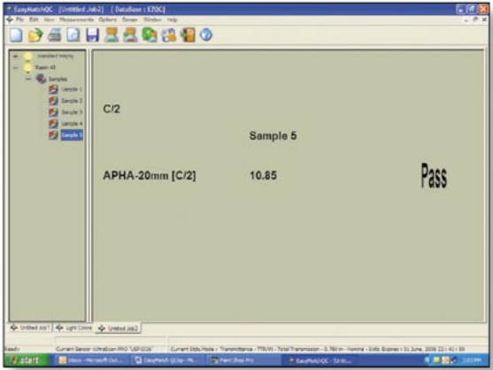 분광측색계에서 색상데이터를 수집, 표시 및 분석